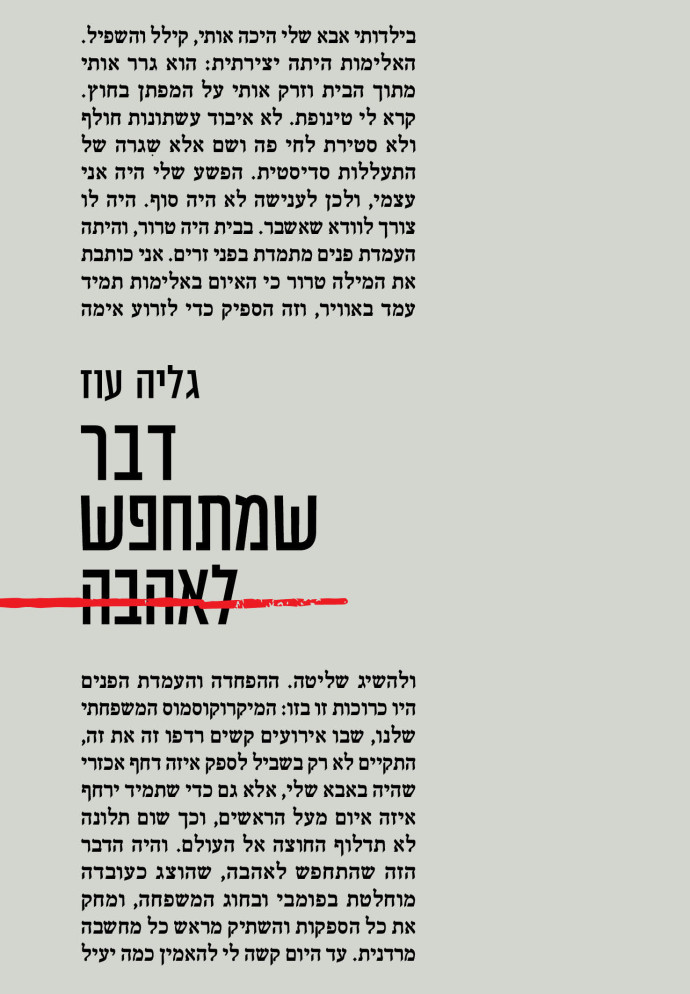 דניאל עוז מגיב לאחותו: "אבא שלי לא היה מלאך, רק בן אדם. אבל הוא היה האדם הכי טוב שזכיתי להכיר ... from www.kipa.co.il המלצות לפעילויות לסוף השבוע ברוח חג הפורים מיטל שרעבי 26/02/2021 11:17 4 דק' קריאה. תחקיר של האתר פוליטקלי קוראת, בעקבות פוסט של כתבת וואלה! בספרה, דבר שמתחפש לאהבה, מספרת הבת כי סבלה משגרה למרות הכאב הנורא שזה מסב לי, אני בוחרת לא להגיב ציבורית על דברי בתי גליה, אלא רק בעניין שנוגע לי באופן הישיר ביותר: דבר שמתחפש לאה… עופרה עופר אורן ofra… על מה קרה לילדה ששמרה על סוד. מה עם אמפתיה, ופחות ציניות וביקורת?הספר של גליה עוז מכאיב בכנותו. מילה טובה מאוד היא סדרה עדכנית להוראת עברית בבית הספר היסודי, המקדמת אוריינות דיגיטלית, למידה שיתופית וחשיבה יוצרת. אבל גם זה עמוס עוז, זה בסדר. אבי קולף הסברס (על אשר פלדמן) (בימוי:
